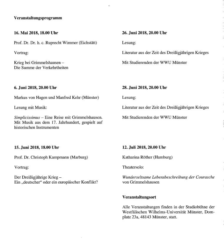 2018: 400. Jahrestag des Ausbruchs des Dreißigjährigen Krieges / 350. Jahrestag der Erstveröffentlichung von Grimmelshausens Simplicissimus Teusch