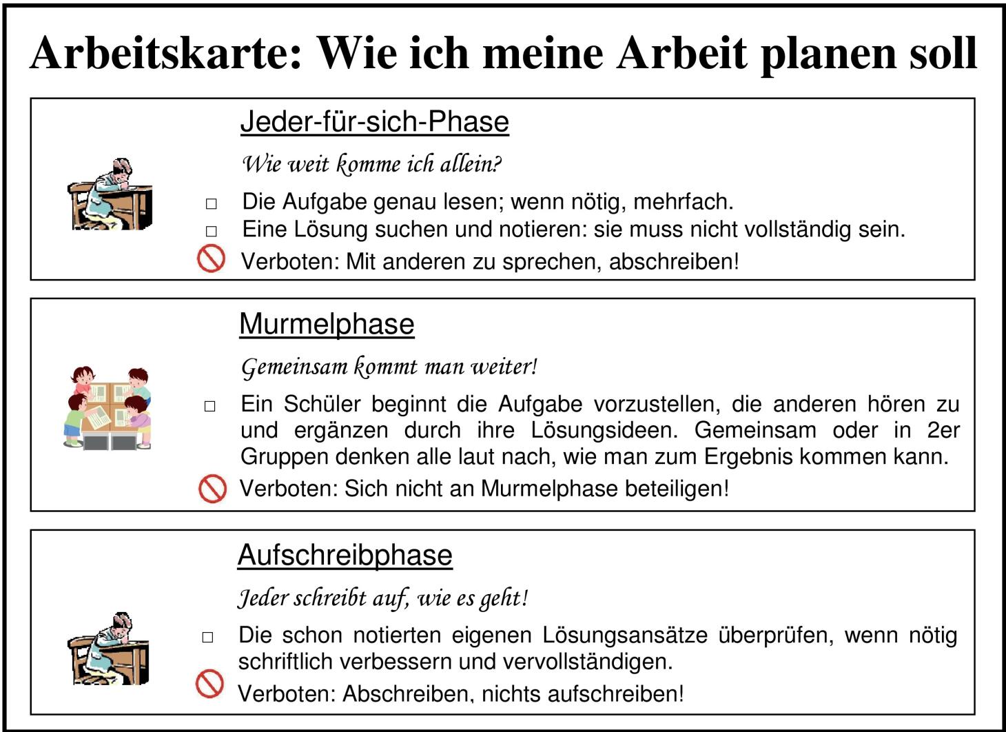 Den Schwierigkeiten beim Modellieren kann ferner durch Wechsel der Kooperationsformen entgegengewirkt werden. Im TeMo-Projekt wurde für die Arbeitsphasen in der Lernumgebung eine Form der kokonstruktiven Gruppenarbeit gewählt, deren positive Effekte empirisch nachgewiesen wurden (vgl. Schukajlow et al. 2009). Ziel dieser speziellen Gruppenarbeitsform ist die individuelle Entwicklung eines Lösungswegs für die zu bearbeitende Aufgabe, der nach einem Austausch mit einer Kleingruppe von Schülerinnen und Schülern gegebenenfalls angepasst werden kann. Durch diesen Wechsel der Sozialformen können die Lernenden sich gegenseitig im Lösungsprozess unterstützen, aber auch Hilfestellungen von der Lehrkraft bekommen, ohne im selbstständigen Arbeitsprozess eingeschränkt zu werden. Den Abschluss dieser Gruppenarbeitsphase sollte eine Plenumsphase bilden, in der die multiplen Bearbeitungswege der Lernenden ausgewertet und reflektiert werden können.