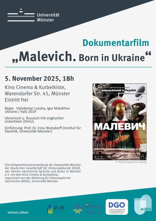 A collaborative event organised by the Münster branch of the German Association for Eastern European Studies (DGO), the Ukrainian Language and Culture Association in Münster e.V. and the Cinema & Kurbelkiste cinema, organised by the Department of Eastern European History (AOEG), University of Münster.