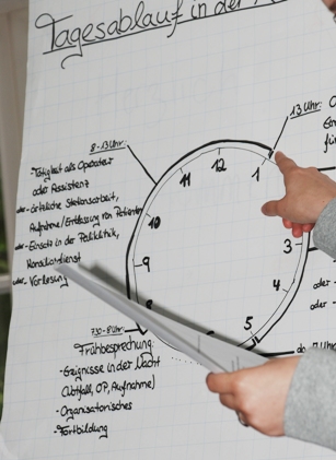 Anhand des Arbeitsalltag ausgewählter Mediziner der Fakultät wurde exemplarisch herausgearbeitet, an welchen Stellen im Tagesablauf Dienstleistungen der Bibliothek benutzt werden, und wann es Sinn macht, zusätzliche Services anzubieten.
