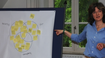 Die Mitarbeiter der Bibliothek trugen dann das komplette Service-Angebot zusammen und stellten es in einem Diagramm dar, das die Stärken und Schwächen der Bibliothek verdeutlichte. Das Team nutzte dies später am Tag als Grundlage für die weiteren Entwicklungspläne.