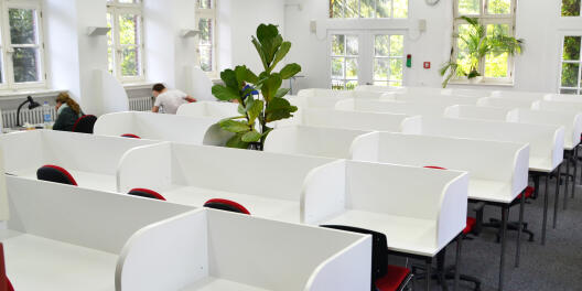 Diese Arbeitsplätze sind sehr begehrt. Wir bitten darum, sie bei Abwesenheit nicht durch Hinterlassung von Büchern / Arbeitsmaterialen zu „reservieren“ und dadurch zu blockieren.