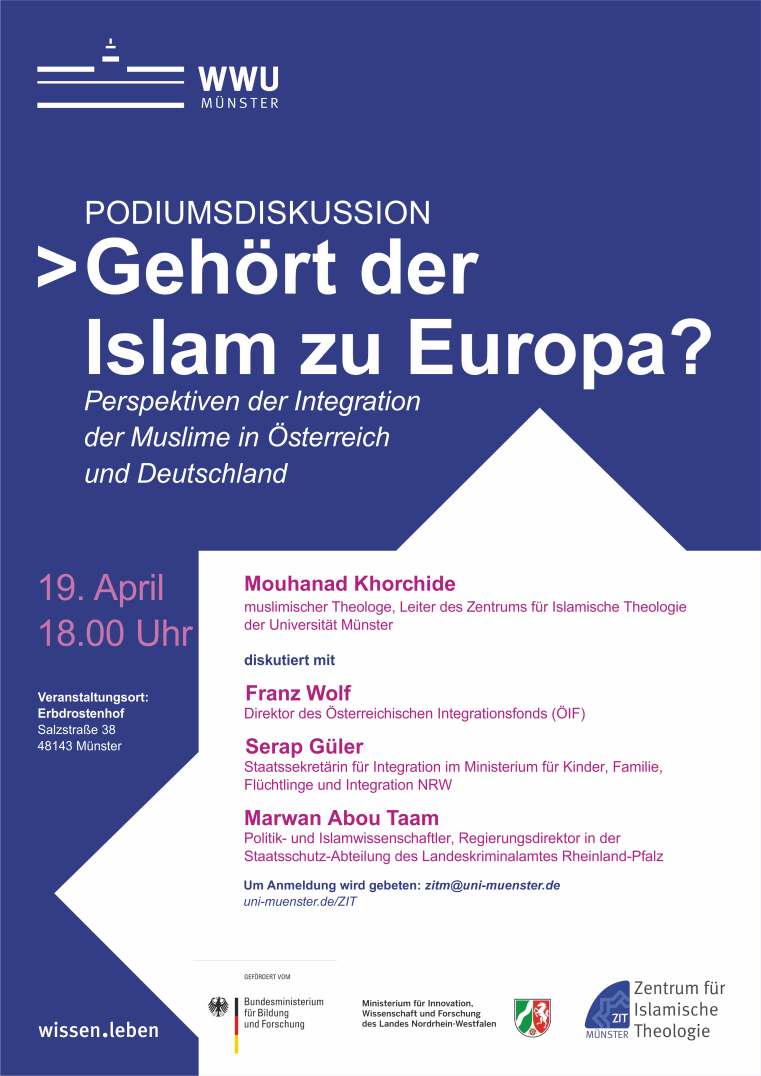 Diese derzeit intensiv diskutierte Frage steht im Mittelpunkt einer Podiumsdiskussion, die das Zentrum für Islamische Theologie (ZIT) am Donnerstag, 19. April um 18:00 Uhr im Erbdrostenhof, Salzstraße 38 veranstaltet. Um Anmeldung wird gebeten per E-Mail an zitm@uni-muenster.de.