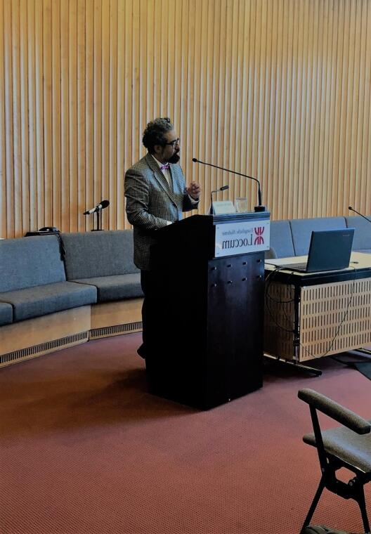 Nach der Einladung des Islamisch-Christlichen-Arbeitskreises Darmstadt hat Prof. Dr. Ahmad Milad Karimi am 12. November 2021 einen Vortrag zum Thema „Gibt es einen deutschen Islam?“ in der Evangelische Kirchengemeinde Eberstadt-Süd gehalten. Dabei ist er kritisch und konstruktiv auf die Wendung „deutschen Islam“ eingegangen und Perspektiven aufgezeigt, wie eine plurale und diverse Mehrheitsgesellschaft auch in religiöser Hinsicht nachhaltig und zukunftsweisend gestaltet werden kann. Zentrale Fragen waren dabei: Wie kann ein friedliches Neben- und Miteinander der Menschen unterschiedlicher kultureller und religiöser Prägung in Deutschland auf dem Boden des Grundgesetzes realisiert und gesichert werden? Was ist unter dem Begriff „deutscher Islam“ zu verstehen? Und kann es einen solchen überhaupt geben? Welche Positionen hierzu gibt es? Und worin die Instabilität einer solchen Aufforderung liegen könnte.
