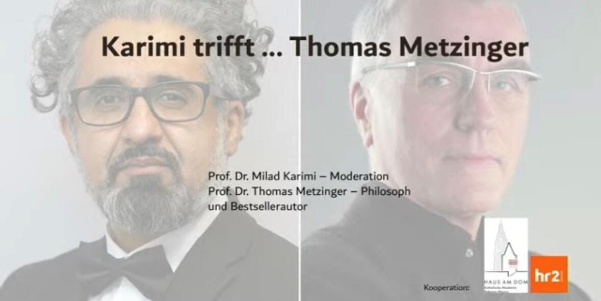 Mit der Reihe „Karimi trifft …“ ist am 10. März 2026 im Haus am Dom eine neue Gesprächsreihe gestartet. Zur Premiere sprach Ahmad Milad Karimi mit dem Philosophen und Bewusstseinsforscher Thomas Metzinger über reines Gewahrsein, Meditation, das Selbstmodell des Menschen und die Frage, wie eine Bewusstseinskultur heute gedacht werden kann. Das Gespräch eröffnet einen konzentrierten Zugang zu einem der drängendsten Themen der Gegenwart: dem Verhältnis von innerer Erfahrung, philosophischer Reflexion und gesellschaftlicher Verantwortung. Die Aufzeichnung des Gesprächs ist auf YouTube abrufbar.