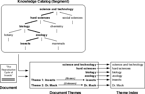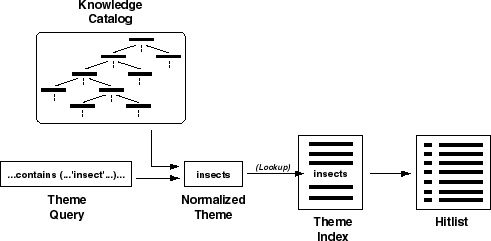 Theme queries enable you to search for documents by their major concepts. The following sections describe the theme indexing and querying processes and how they use the knowledge base:
