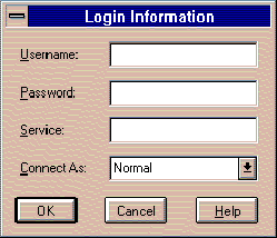 Figure 6-5, "Login Information Window", appears after you click on the Oracle Biometric Manager icon in the Oracle Enterprise Manager window.