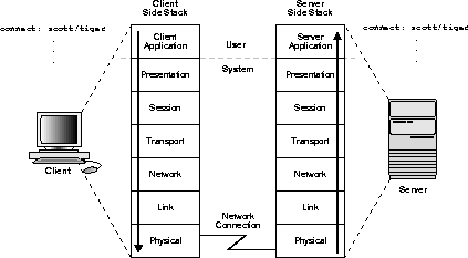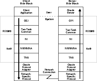 Figure 2-6 depicts a typical communications stack in an Oracle networking environment.