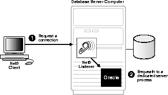Figure 2-1 depicts the role of the network listener in a typical Net8 connection to a server.
