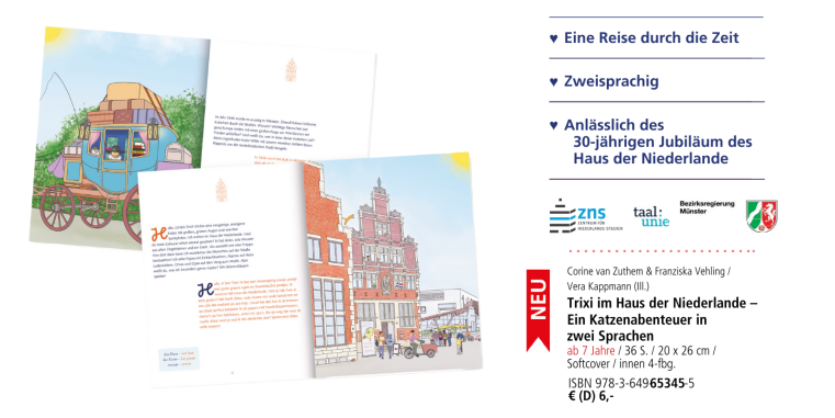 Katze Trixi wohnt im Haus der Niederlande, mitten in der Innenstadt von Münster. Ihr Zuhause hat viele spannende Geschichten zu erzählen und sie und ihre Familie waren immer mit dabei. Vor langer Zeit kam Urgroßvater-Kater Willie für den Frieden von Westfalen nach Münster.