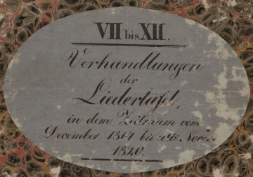 3, die Verhandlungen von 1845 bis incl 49 (Letztere mit der Bitte um [unleserlich] Completirung mit dem Ihnen übersandten November Protokoll) ungebunden, aber nach Jahrgängen und in sich geordnet in der verschlossenen Mappe