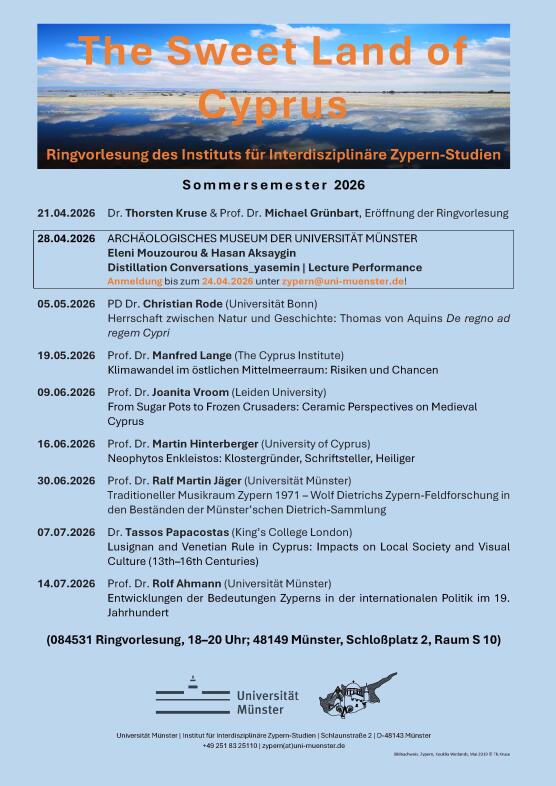 Am 27. Februar 2026 begrüßte Thorsten Kruse, Geschäftsführer des Zypern-Instituts, die Kulturattachée der Botschaft der Republik Zypern in Berlin, Marianna Christofides, sowie die beiden zypriotischen Kunstschaffenden Eleni Mouzourou und NATIS (Hasan Aksaygın), die seit längerer Zeit in Berlin leben und arbeiten, zu einem Arbeitstreffen in Münster. Im Mittelpunkt stand die Vorbereitung eines gemeinsamen Performance-Projekts, das in Kürze vorgestellt wird.
