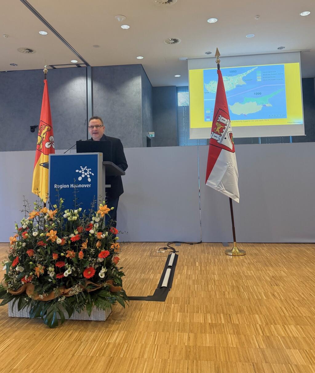 Am 14. April 2025 war Thorsten Kruse auf Einladung der Landeshauptstadt Hannover, der Region Hannover und des Europäischen Informationszentrums Niedersachsen zu Gast in Hannover. Im Rahmen der Veranstaltung „Zypern – Zu Gast bei Freunden: Europäische Politik, Geschichte und kulturelles Erbe im Dialog" beleuchtete er in seinem Vortrag das Spannungsfeld von Religion und Politik. In der anschließenden Podiumsdiskussion mit Prof. Hubert Faustmann von der Universität Nikosia stand die Frage im Mittelpunkt, wie Zypern den Spagat zwischen EU-Haushalt, Klimaschutzzielen und europäischer Sicherheit bewältigt.