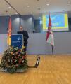 Am 18. Dezember 2025 wurde im Felleshus (Gemeinschaftshaus) der Nordischen Botschaften in Berlin eine gute alte Tradition fortgeführt. Anlässlich des Wechsels der EU-Ratspräsidentschaft von Dänemark zu Zypern am 1. Januar 2026 fand in der Hauptstadt die bereits seit Jahren traditionelle Übergabe des Berliner EU-Ratsvorsitzrads statt. Der geschäftsführende Direktor Prof. Michael Grünbart und der Geschäftsführer des Zypern-Instituts, Dr. Thorsten Kruse, reisten anlässlich dieses Ereignisses nach Berlin und folgten damit der Einladung der zypriotischen Botschafterin Maria Papakyriakou zur Teilnahme an der Veranstaltung. Neben der Übergabe des Fahrrads stellte Botschafterin Papakyriakou die wichtigsten Punkte der anstehenden Ratspräsidentschaft Zyperns vor. In Kürze wird der Staatspräsident der Republik Zypern, Nikos Christodoulidis, eine ausführliche Darstellung der Arbeit der zyprischen Präsidentschaft vorlegen. Umrahmt wurde die gesamte Veranstaltung von Darbietungen des Berliner HXOS-Chors.