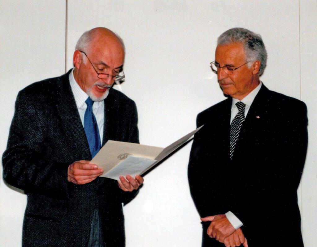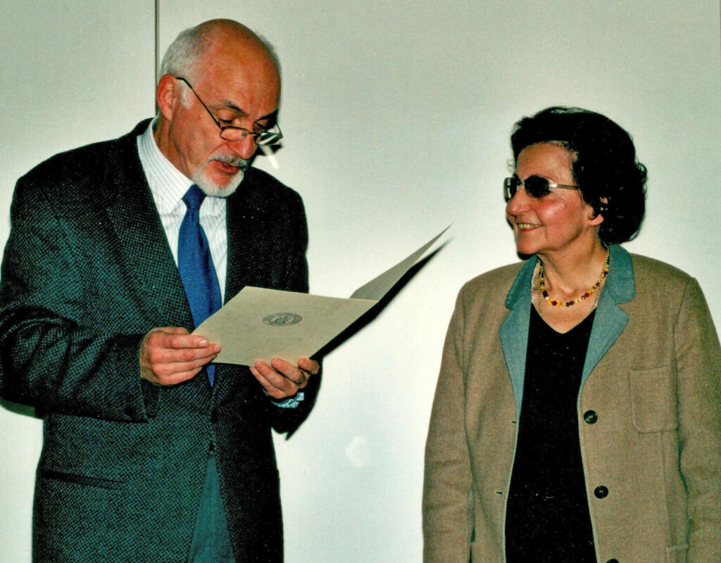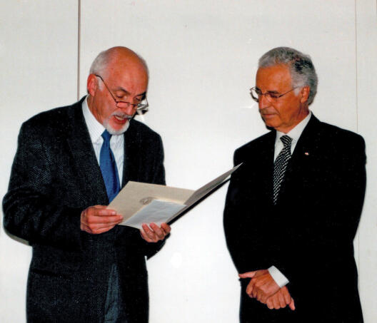 Freundschaftsplakette der Universität Münster für Nelly Tsouyopoulos und Andros Nikolaides