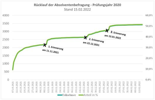 Die Feldphase der Befragung des Absolvent*innenjahrgangs 2024 ist gestartet. Angeschrieben und zur Teilnahme eingeladen sind alldiejenigen, die zwischen dem 01.10.2023 und dem 30.09.2024 ihr Studium oder ihre Promotion an der Uni Münster beendet haben. Auch Bachelorabsolventinnen und -absolventen, die nach ihrem Abschluss ein Masterstudium angeschlossen haben, sind herzlich zur Teilnahme eingeladen. Sollten Sie auch zur Zielgruppe der Befragung gehören, aber keine Einladung erhalten haben, melden Sie sich bitte bei uns.