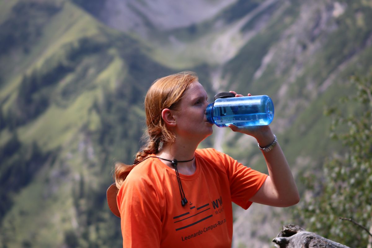 Sportlich unterwegs war WWU-Mitarbeiterin Martina Liebich mit ihrem Leonardo-Campus-Run-Shirt in den österreichischen Alpen. © privat