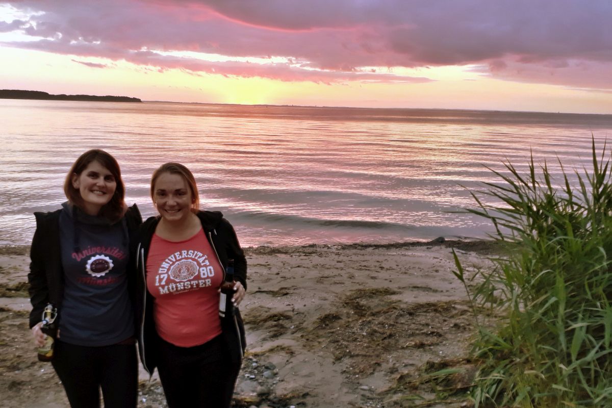 WWU verbindet – Sandra Strauch genoss bei einer kleinen "Klassenfahrt" mit ihrer Studiumsclique den Sonnenuntergang an der Ostsee. © privat