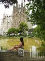 WWU-Studentin Isabel Hagenbruck zeigte ihre Verbundenheit zur WWU mit einem Beutel des AStA Münster vor der eindrucksvollen Basilika Sagrada Familia in Barcelona. © privat