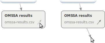 The little arrow in the lower right-hand corner of output files and file lists can be dragged using the mouse. Click on the arrow and drag it away while keeping the mouse button pressed. The arrow can be connected to other boxes or can be dropped on the background, which opens the scripts menu and lets you select the next processing step. Scripts that do not operate on the input file the arrow is coming from are grayed out.