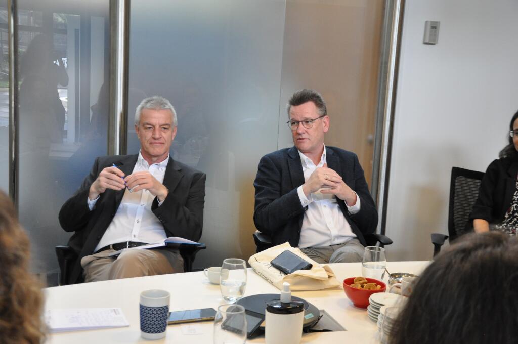 Rektor Johannes Wessels (r.) und Pressesprecher Norbert Robers im Deutschen Wissenschafts- und Innovationshaus in São Paulo.© Uni MS - nor