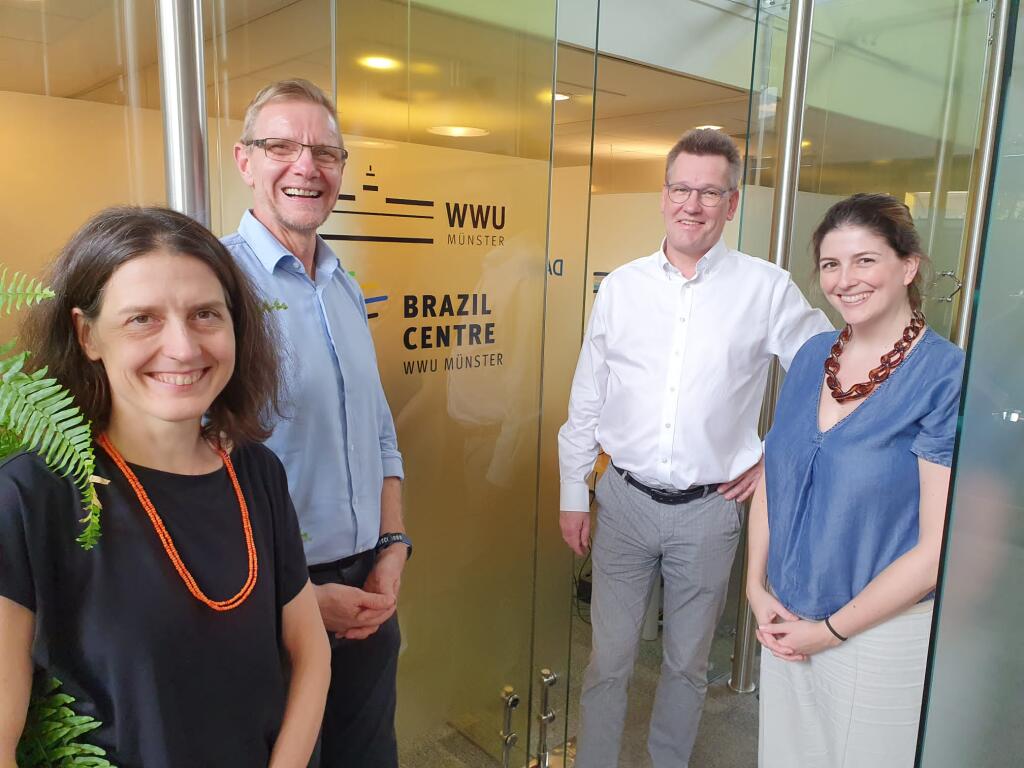 Die Zukunft der brasilianischen Stipendien-Politik stand im Mittelpunkt des Gesprächs von Capes-Präsidentin Mercedes Bustamante, dem Capes-Direktor für internationale Beziehungen, Rui Oppermann (2.v.l.), mit WWU-Rektor Johannes Wessels (r.) und dem wissenschaftlichen Leiter des Brasilien-Zentrums der WWU, Bernd Hellingrath.© WWu - nor