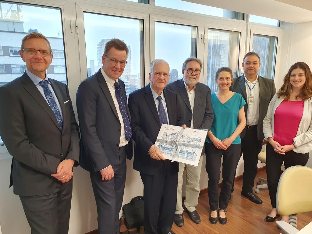 Die DAAD-Repräsentanz im Stadtteil Botafogo zählt zu den ältesten weltweit. Im vergangenen Jahr feierte der Austauschdienst rund um Außenstellenleiter Dr. Jochen Hellmann ihre seit 50 Jahren währenden Anstrengungen, um die akademische und wissenschaftliche Zusammenarbeit zwischen Brasilien und Deutschland zu stärken. „In Gedanken rollen wir Ihnen heute einen roten Teppich aus“, begrüßt Jochen Hellmann die münstersche Delegation. Die WWU schreite mit ihren Aktivitäten in Brasilien „beispielhaft“ voran.