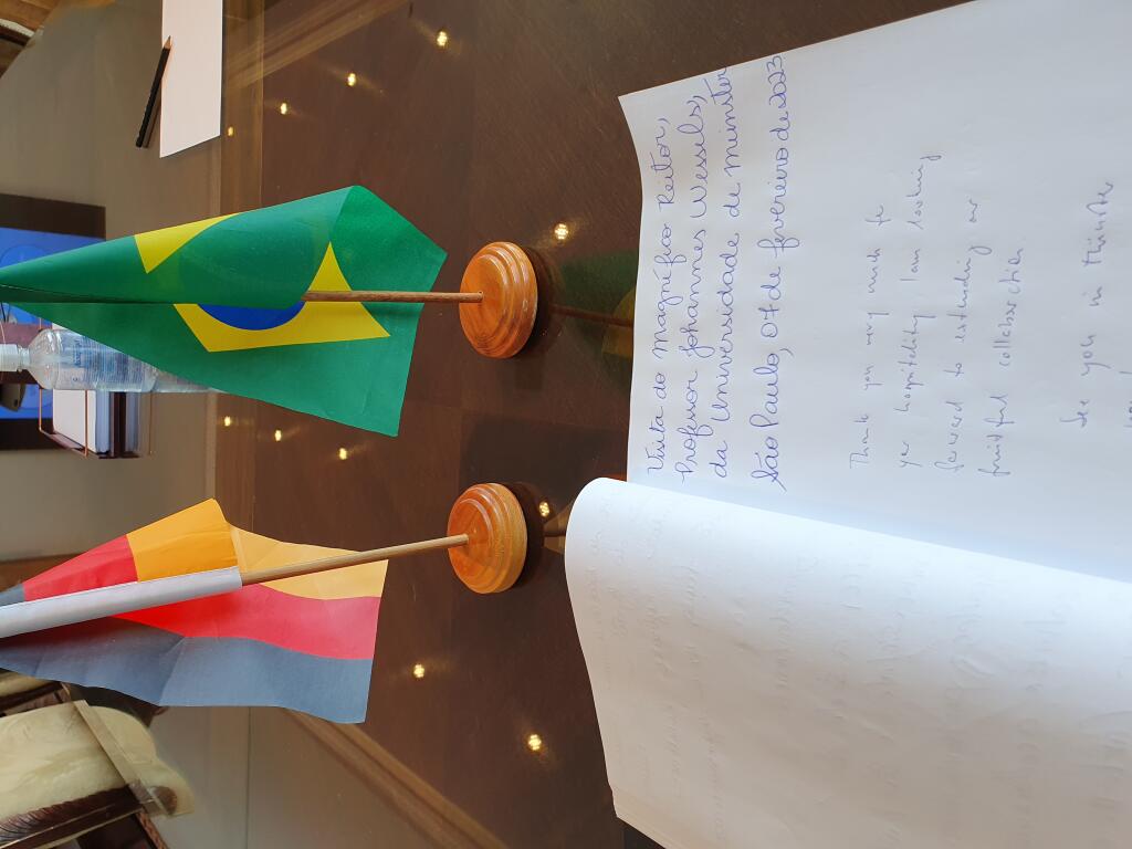 Nach dem Gespräch mit dem Rektorat der Universität São Paulo trug sich Rektor Johannes Wessels ins Gästebruch ein.© wwu - nor
