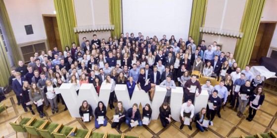 Kanzler Matthias Schwarte gratuliert den besten Auszubildenden