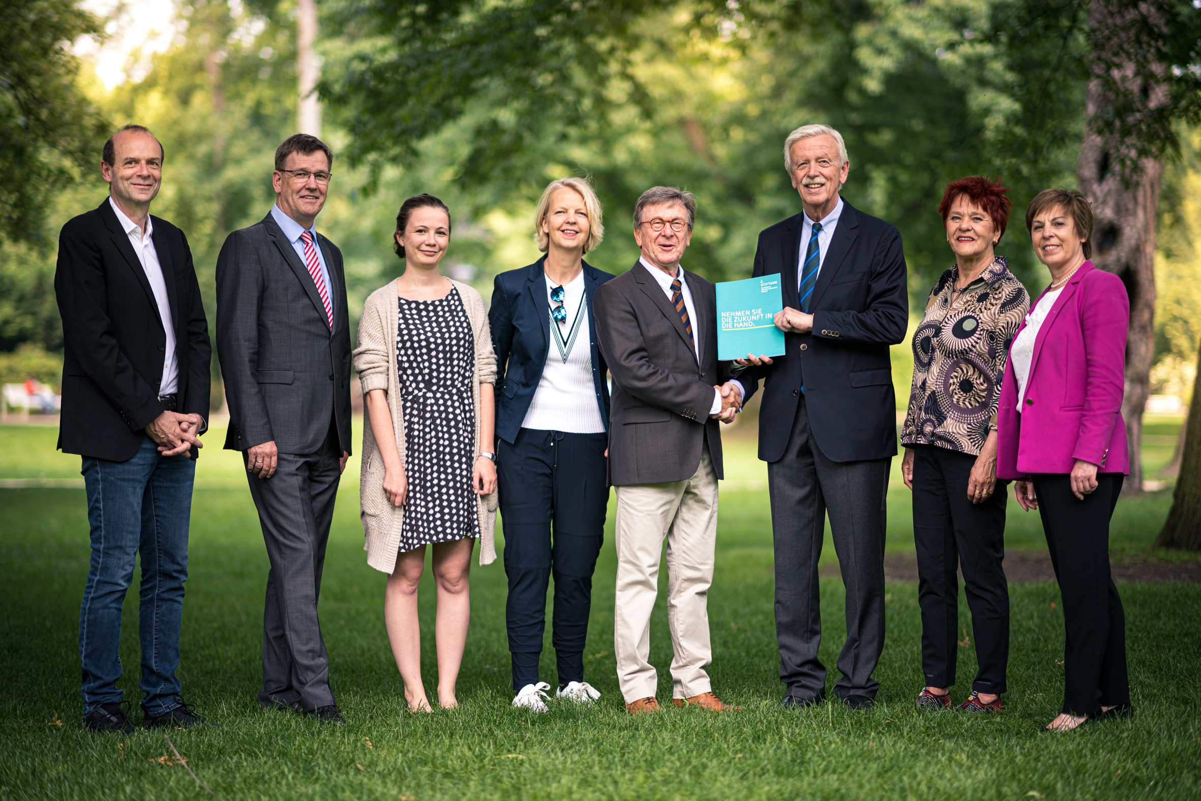 Das Kuratorium der Stiftung WWU wählte Hans-Bernd Wolberg (3. v. r.) zum Kuratoriumsvorsitzenden in der Nachfolge von Prof. Dr. Berthold Tillmann (4. v. r.).