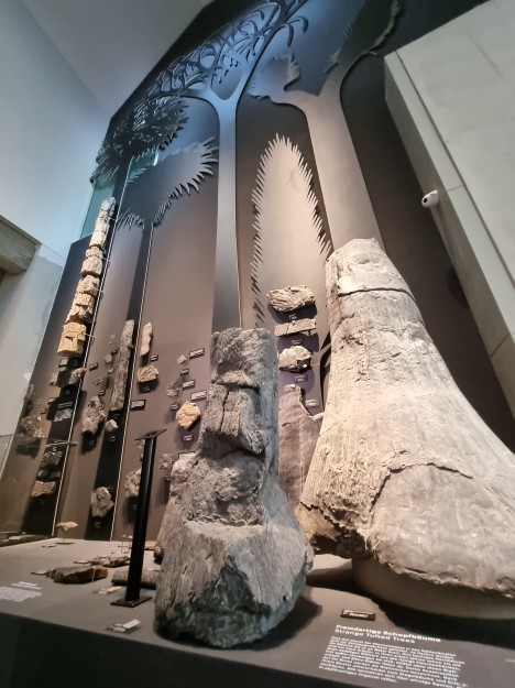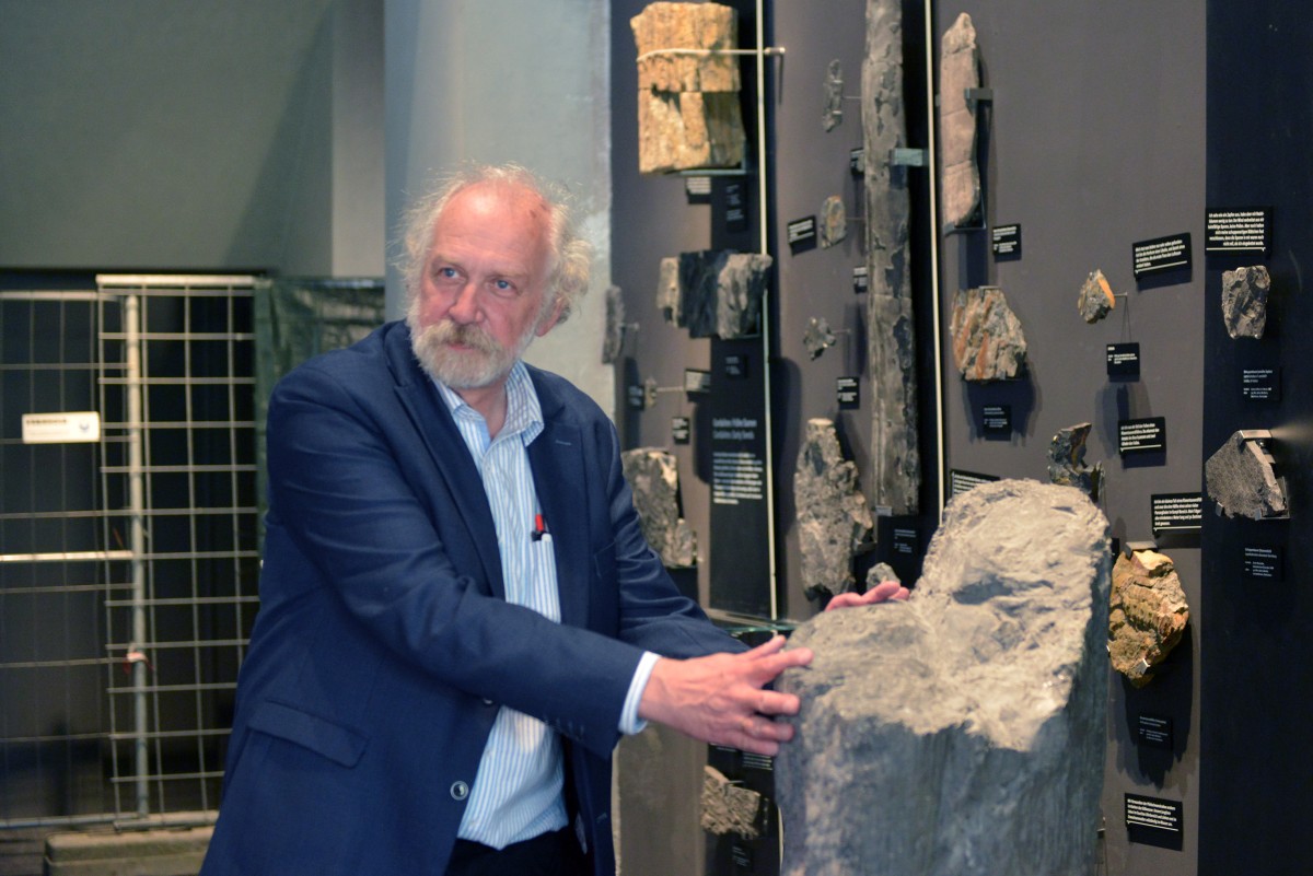 Die Karbon-Periode, die etwa vor 355 Millionen Jahren begann und vor 290 Millionen Jahren endete, war durch reichhaltige Kohlevorkommen gekennzeichnet. Die Kohle wurde und wird heute dort abgebaut, wo sich zu Zeiten des Karbons Feuchtgebiete mit einer dichten Vegetation befanden. „Dieses Gestein hat wie kein anderes auch den Landstrich Westfalen geprägt“, betonte Dr. Steffen Trümper vom Institut für Geologie und Paläontologie beim Rundgang. „Die Bäume aus fossilem Original-Material stellen für uns eine Art Archiv dar“, ergänzte Harald Strauß. „Wir lassen sie in unserem Museum buchstäblich in den Himmel wachsen.“