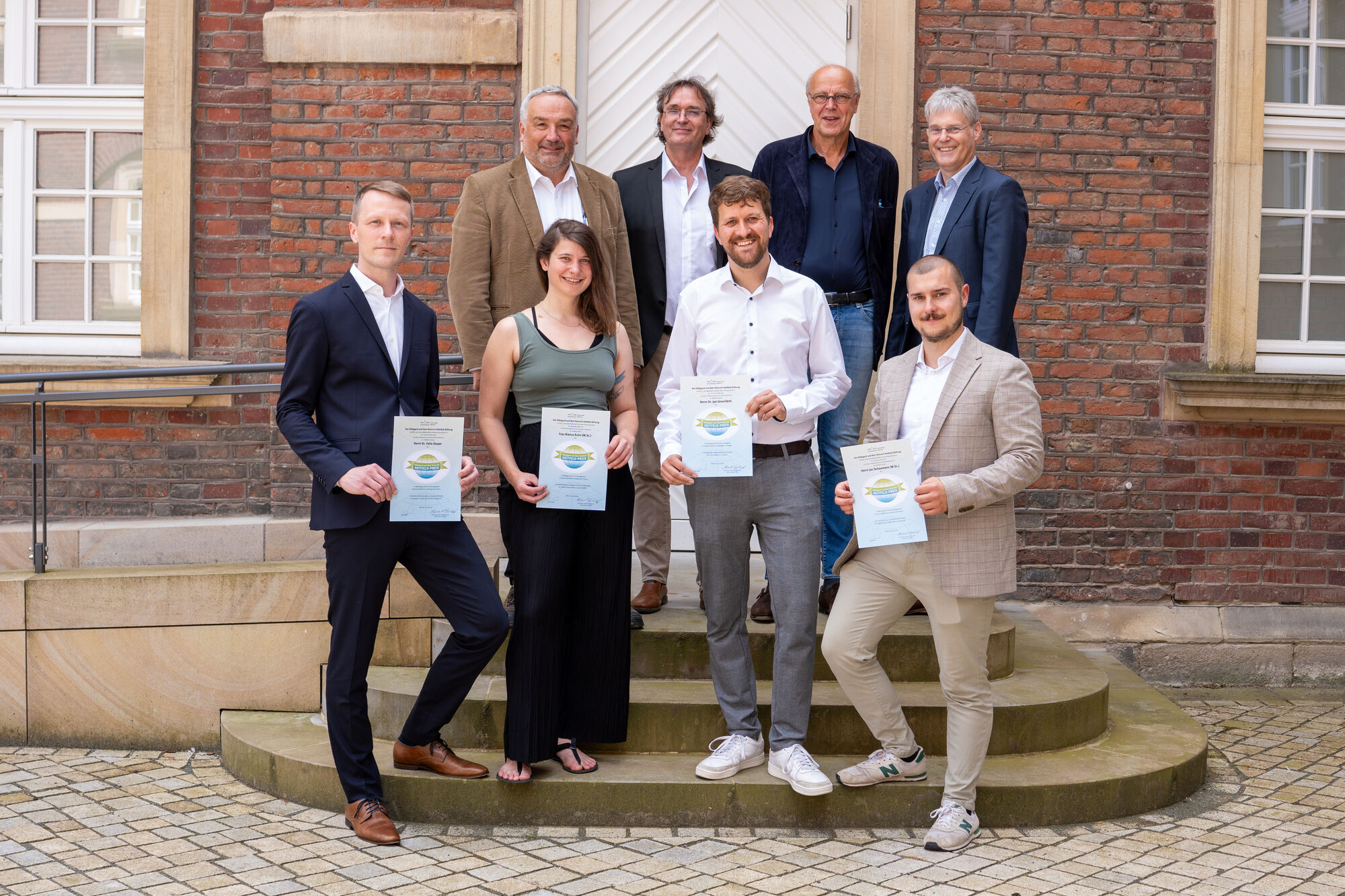 Das Institut für Geologie und Paläontologie der Universität Münster hat in diesem Jahr vier Nachwuchstalente mit dem Preis der „Hildegard und Karl-Heinrich Heitfeld Stiftung“ ausgezeichnet: Dr. Felix Saupe und Dr. Jan Unverfärth wurden für ihre Dissertationen mit jeweils 2.500 Euro geehrt, Bianca Kuhn und Jan Schaumann erhielten für ihre Masterarbeiten jeweils 1.500 Euro. Prof. Dr. Norbert Hölzel, Dekan des Fachbereichs Geowissenschaften, überreichte die Auszeichnungen bei einer Feierstunde im Geomuseum der Universität Münster.