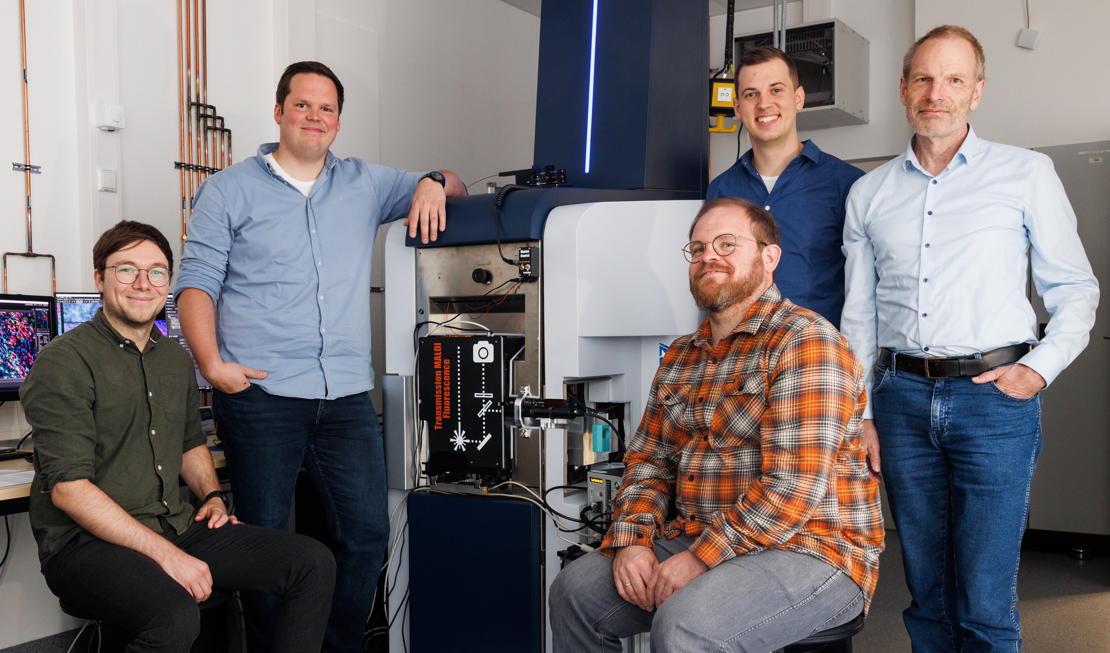 Bei der bildgebenden MALDI-Massenspektrometrie werden Moleküle mithilfe eines Lasers aus dem Gewebe gelöst und ihre Masse gemessen. Auf diese Weise können Informationen zu zahlreichen Metaboliten (Stoffwechselprodukte) und Zellwandbestandteilen gewonnen werden. Da ein Massenspektrometer jedoch nur elektrisch geladene Teilchen erkennt, lässt sich ein zweiter Laser zur Nachionisation einsetzen. Diese sogenannte MALDI-2-Technik erhöht die Nachweisempfindlichkeit für viele wichtige Molekülklassen erheblich. Die nun vorgestellte Methode kombiniert zwei technische Verbesserungen: erstens die Nutzung einer inversen Bestrahlungsgeometrie, auch Transmissionsmodus genannt, die die räumliche Auflösung steigert. Zweitens die Integration eines Fluoreszenzmikroskops direkt in das verwendete Massenspektrometer. Zusammen mit einer optimierten Probenpräparation lassen sich so fluoreszenzbasierte Messungen, beispielsweise auf Proteinbasis, direkt mit der massenspektrometrischen Analyse des Metaboloms und Lipidoms koppeln – und zwar am exakt gleichen Gewebeschnitt.