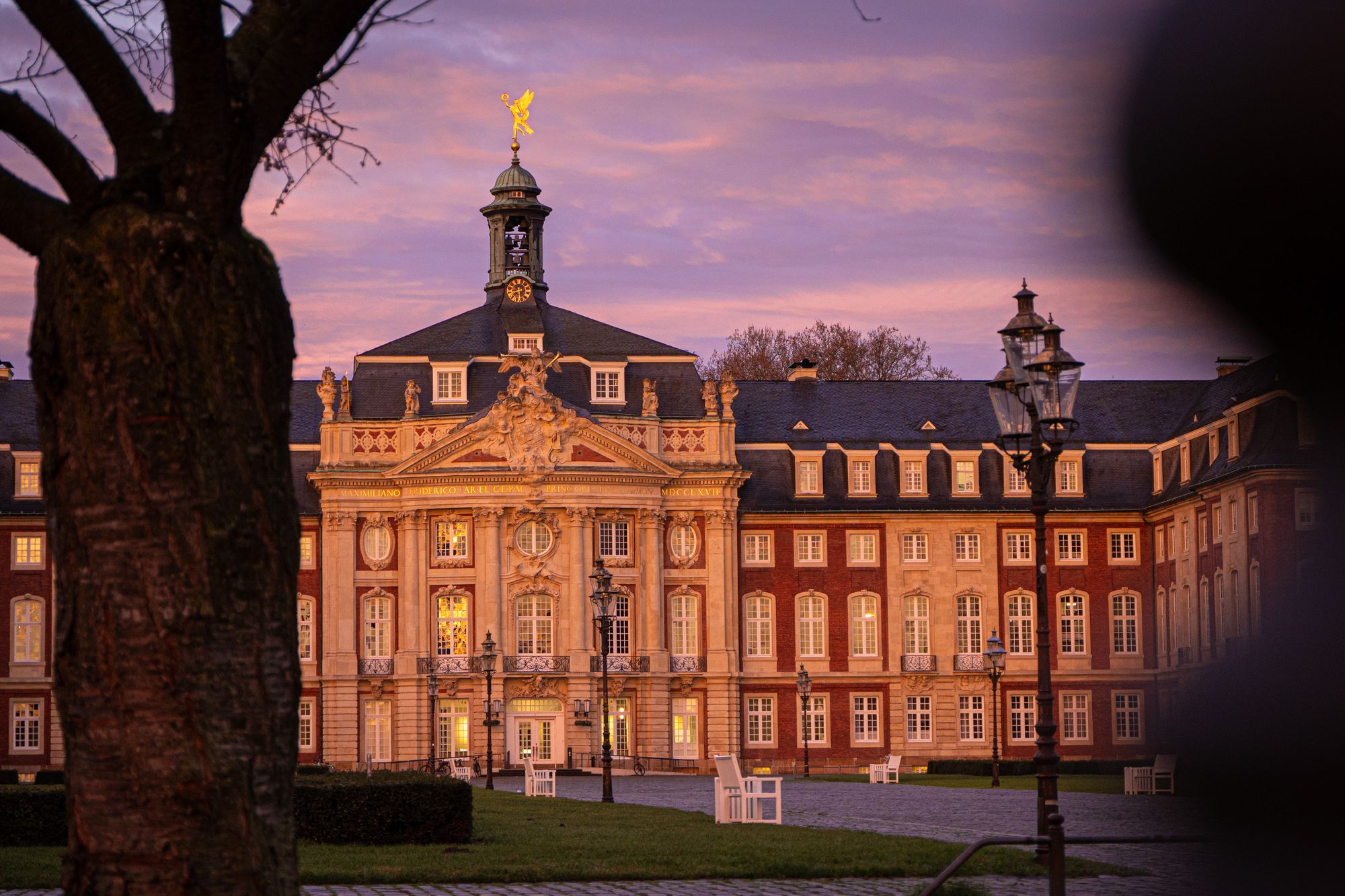 Das Schloss bei Sonnenaufgang.<address>© Uni MS - Linus Peikenkamp</address>
