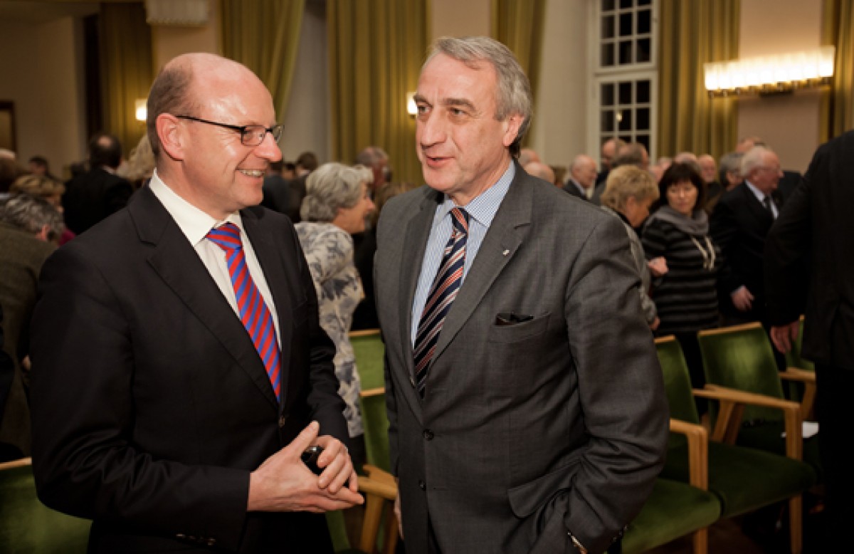 Als ehemaliger Kämmerer und Oberbürgermeister der Stadt Münster ist Dr. Berthold Tillmann nicht nur ein Polit-Profi, sondern auch ein routinierter Redner. Als er aber am Donnerstagabend (26.1.) in der Aula des münsterschen Schlosses das Manuskript für seine Antrittsvorlesung als Honorarprofessor der Westfälischen Wilhelms-Universität Münster (WWU) zurechtlegte, gestand er seinen rund 300 Zuhörern gleich zu Anfang: „Ich habe Lampenfieber." Aber nur kurz, die Aufregung legte sich schnell. Schließlich sei das Angebot einer Honorarprofessur, betonte er, ein durchweg positives Zeichen: „Man kann auch mit fast 62 Jahren Wachstumsschübe erleben, die unerwartet kommen."