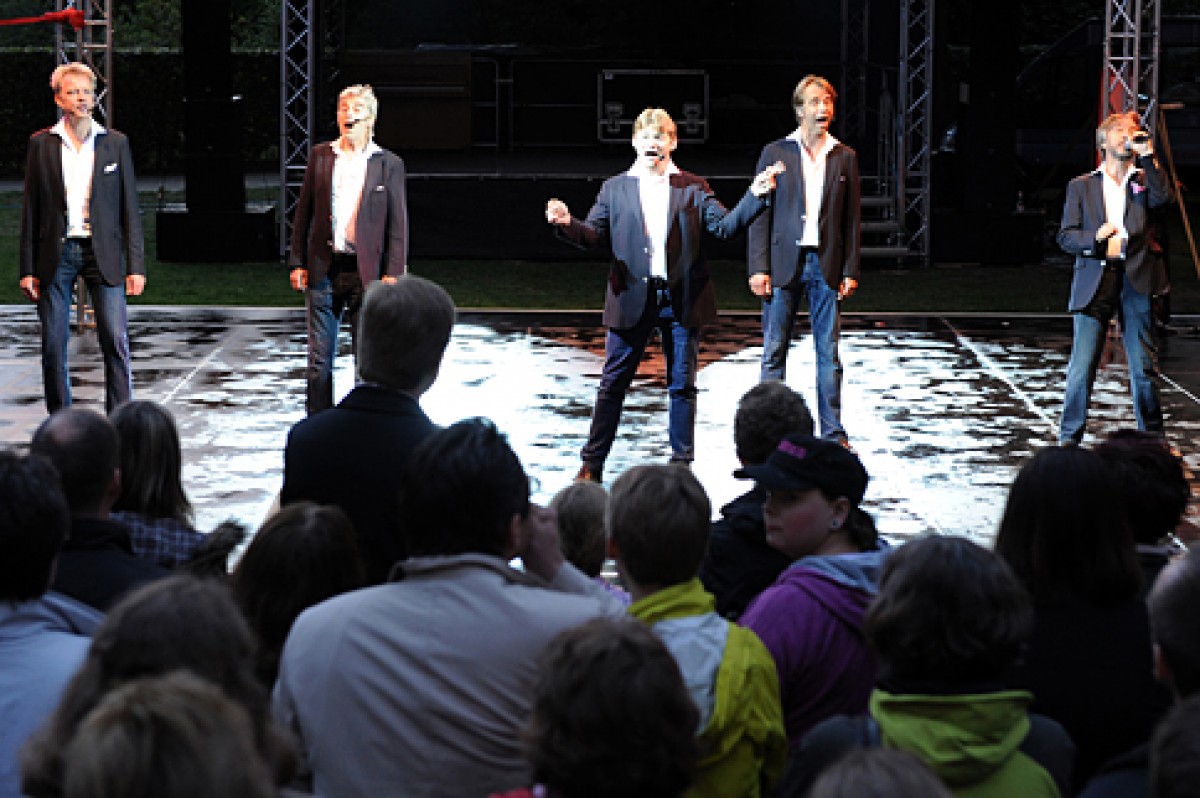 Der letzte Schauer für diesen Abend war soeben über eben jenes Sukkulentenhaus hinweggezogen, als fünf gut gekleidete Herren die Bühne betraten. Es dauerte nicht lange, bis die „6-Zylinder“ ihre Zuhörer aus der Reserve lockten – mit einer provokant-launigen „Abrechnung“ mit den Westfalen, mit einem Lobgesang auf Münster oder einer Verballhornung des Billy-Joel-Songs „Uptown girl“, das die A-cappella-Künstler in „Abtauen girl“ umtauften. Jetzt kam Stimmung auf. Ein, zwei Zugaben - Ehrensache.