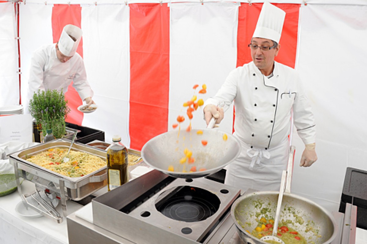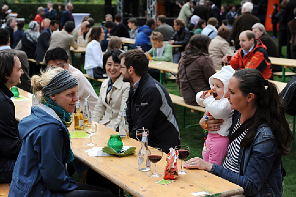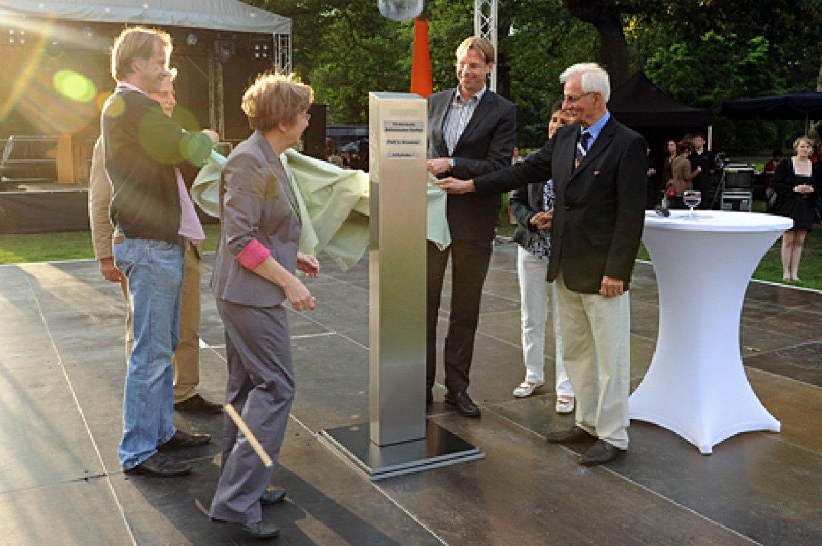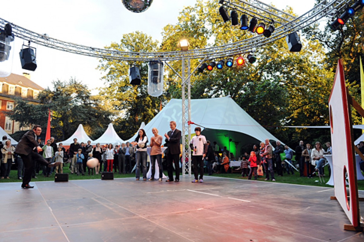 Man nehme: ein Salonorchester, eine Big Band, eine Fußball-Bundesligaspielerin und zwei pfiffige Moderatoren. Man braucht zudem: reichlich gut gelaunte Gäste, halbwegs Glück mit dem Wetter und eine kulinarische Grundversorgung. Wenn es dem Gastbegeber schließlich zusätzlich gelingt, eine beeindruckende Schloss-Kulisse sowie fünf erstklassige A-cappella-Sänger und Entertainer als I-Tüpfelchen aufzubieten – dann steht einem launigen und unterhaltsamen Sommerfest nichts mehr im Wege. Bis in den frühen Samstagmorgen hinein feierten mehrere hundert Freunde und Förderer der Universität Münster, die Wiese hinter dem Schloss war picke-packe voll. Am Samstagvormittag ging es sogar noch weiter: Die Stabsstelle Universitätsförderung hatte mehr als 120 Alumni zu einem Brunch inklusive Showkochen eingeladen. Und all das nicht zuletzt für einen guten Zweck: Das Sommerfest der WWU stand ganz im Zeichen der Initiative „Mein kleiner grüner Kaktus“ – einem Spendenaufruf des Rektorats zugunsten des Botanischen Gartens.