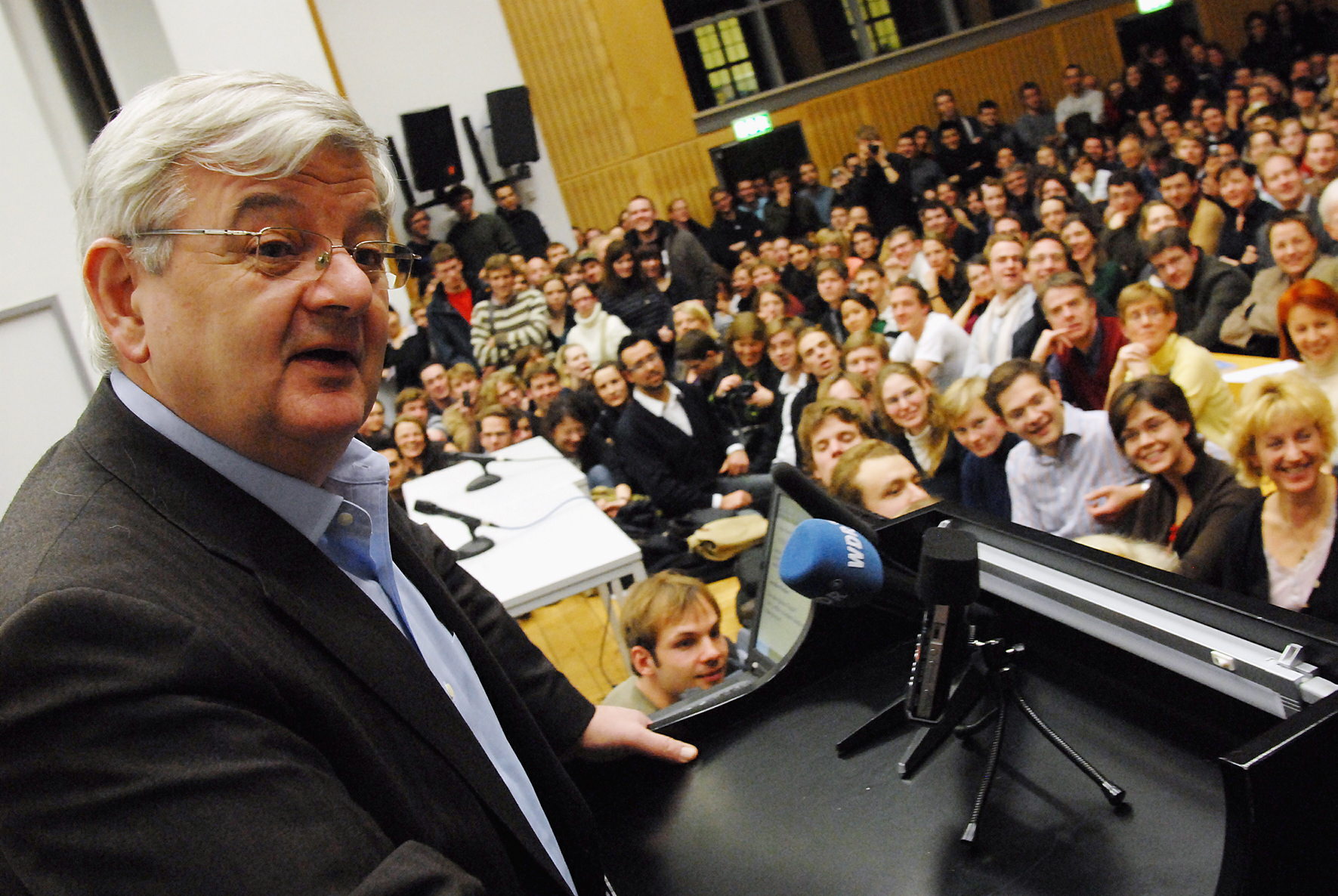 Vor rund 1000 Zuhörern zeichnete er ein pessimistisches Bild der Lage, die sich durch den Gaza-Krieg verschärft habe. „Mediation ist das Kerngeschäft moderner Diplomatie“ knüpfte Fischer direkt an den Titel der Ringvorlesung an. Wer als Vermittler auftrete, müsse Distanz halten und Empathie für beide Seiten aufbringen. „Sie werden sonst sehr schnell in den Konflikt hineingezogen.“ Distanz bedeute jedoch nicht, keinen Standpunkt zu vertreten, so der Grünen-Politiker. „Deutschland hat eine Verpflichtung gegenüber Israel und seinem Existenzrecht“, verdeutlichte er und forderte, dass die Deutschen ihrer historischen Verantwortung nachkommen müssten.