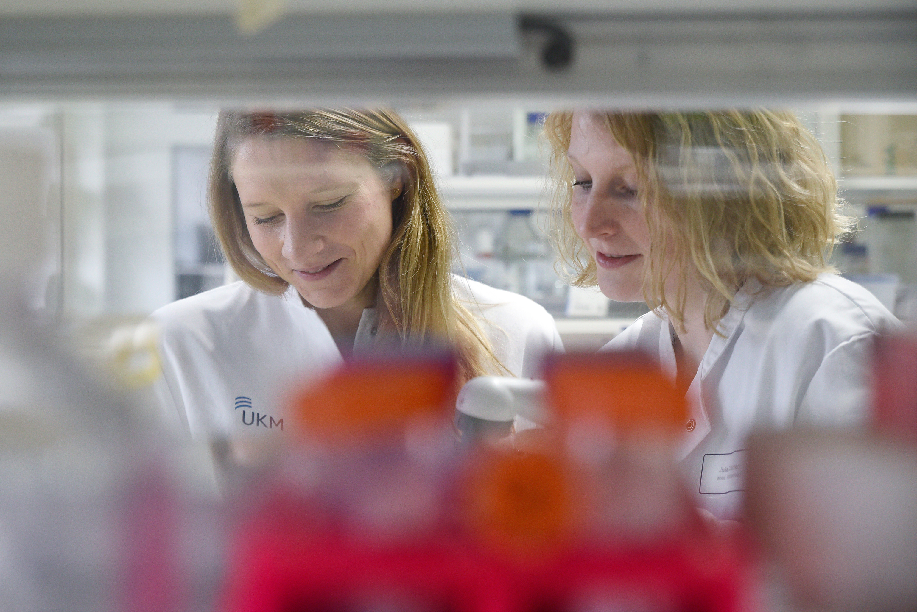 When biomedical scientist Julia Ghelman discovered around two years ago that she and her husband were expecting a child, she had just started out on her PhD degree at Münster University. Julia Ghelman is a member of a research group at the Cells-in-Motion (CiM) Cluster of Excellence investigating the background of the autoimmune disease multiple sclerosis. Her aim is to find out which factors define the movement behaviour of cells in the central nervous system. During her pregnancy Julia Ghelman was no longer able, for health and safety reasons, to carry out all the work in the laboratory, and at the beginning of her maternity leave she had to stop working altogether for a few months. "However, interrupting the project for a longer period of time just wasn't on," she says. She found the solution when she came across the "LabAid" programme at the Cluster of Excellence.