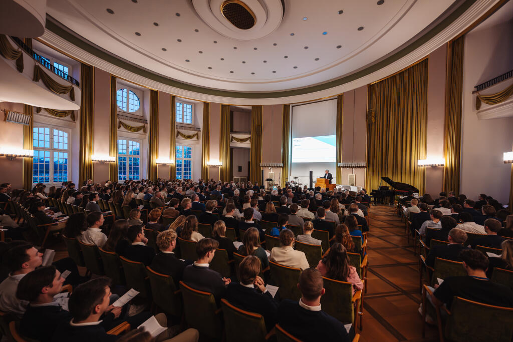 Rund 300 gut gelaunte Gäste, reichlich Musik mit einer außergewöhnlichen Zugabe und ein interessanter Festvortrag: Die diesjährige Stipendienfeier bot den Förderern und Stipendiaten des ProTalent-Stipendienprogramms ein abwechslungsreiches Programm. Die Lebensläufe der Stipendiaten zeigten nicht nur exzellente akademische Leistungen, sondern auch ein bemerkenswertes Maß an sozialem, gesellschaftlichem und universitärem Engagement, betonte Rektor Prof. Dr. Johannes Wessels. „Die Vielfalt Ihrer Interessen, Erfahrungen und Hintergründe ist eine große Stärke – für unsere Universität und für unsere Gesellschaft insgesamt.“ Gleichzeitig dankte er den 113 Förderern. „Mit Ihrem Engagement erkennen Sie nicht nur die Leistungen und Potenziale der Geförderten an, sondern schenken ihnen Vertrauen, Ermutigung und Motivation für ihren weiteren Weg.“