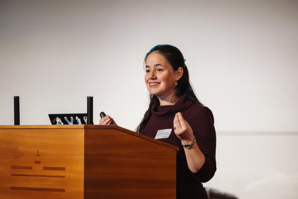 Im Festvortrag ging es um nichts weniger als um den Ursprung des Lebens – um die Zelle als die kleinste lebende Einheit aller Organismen. Eine Zelle ist ein hochkomplexes Gebilde. Wer sie künstlich von Grund auf nachbauen will, muss die wichtigsten Komponenten zu einem funktionierenden Organismus zusammenfügen und tatsächlich zum Leben erwecken – das ist die große Vision der Zellingenieure, die dafür den sogenannten „Bottom-up-Ansatz“ verfolgen. Kein einfaches Thema - aber der Biochemikerin Prof. Dr. Seraphine V. Wegner gelang es in ihrem Festvortrag, den faszinierenden Weg zur synthetischen Zelle anschaulich darzustellen.