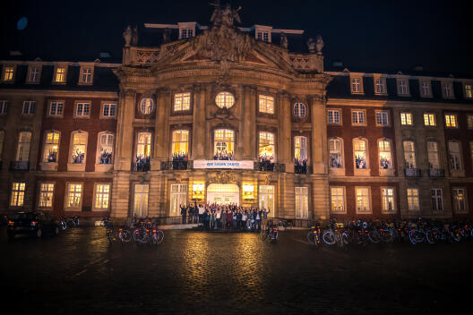 Einen großen Dank an ihre Förderer sprachen die ProTalent-Stipendiatinnen und -Stipendiaten am 17.12.2018 aus. Das Gruppenfoto unter dem Motto „WIR SAGEN DANKE!“ an den Fenstern des Schlosses war Teil der diesjährigen Stipendiatenbegrüßung des Stipendienprogramms ProTalent der Universität Münster. Grund zu danken gab es reichlich: Mit 237 Stipendien hat ProTalent im aktuellen Förderjahr eine neue Rekordzahl erreicht.