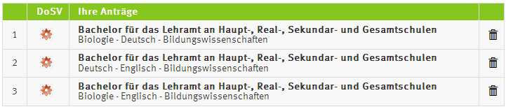 You are interested in majoring in Biologie, Deutsch and Englisch in a BA HRSGe programme. You wish to combine Bildungswissenschaften with two of your majors. Bildungswissenschaften is then automatically added to the combination. This means you will be applying for the three combinations: